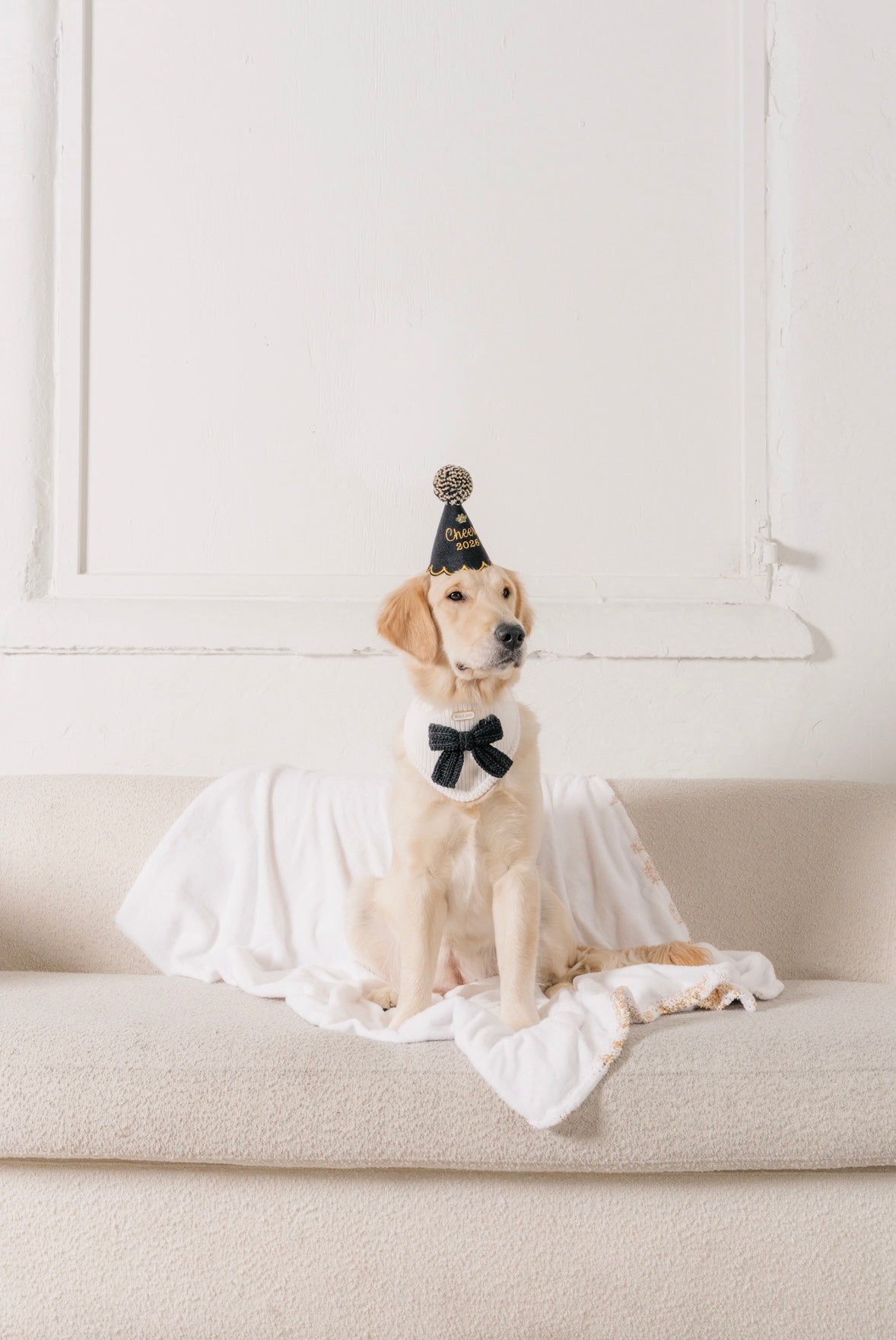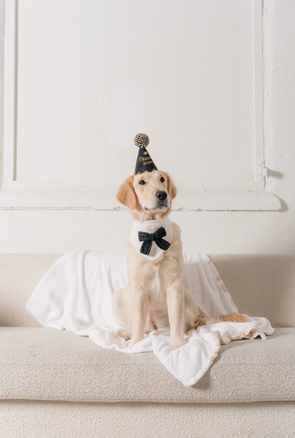 This bandana features a black hand-crocheted bow on our signature ivory colored bandana. Styling inspo includes our new years party hat. Sold separately. Ships separately from holiday 2025 orders. Guaranteed delivery before new years eve.